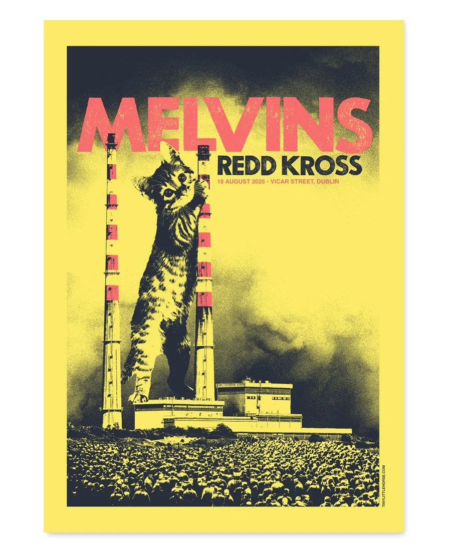 Melvins + Redd Kross | Dublin | 2025: 2 colour screenprint (lipstick red, navy grey) on 220gsm white card. A2 (16.5" x 23.4") Artist (G Beattie) signed and numbered, very limited edition of only 60 copies - official poster approved by band for their show at the Vicar Street, Dublin on August 18th, 2025. Part of Secret Serpents Tour Series. Also available: limited to 10 copies, variant on 240gsm Vanguard Daffodil yellow stock.